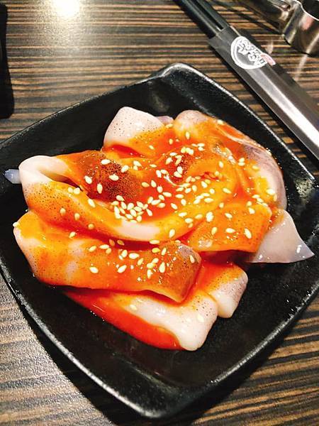 烏賊的口感滑嫩有彈性 而且配上他們濟州醬淋在上方再下去火烤