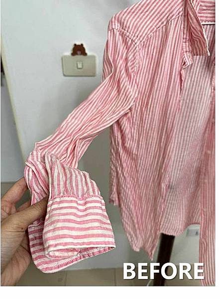(左邊 - 滿滿皺褶 / 右邊 - 燙過非常整齊)