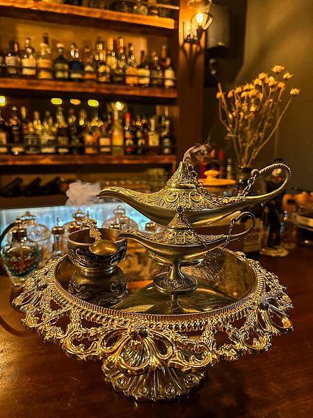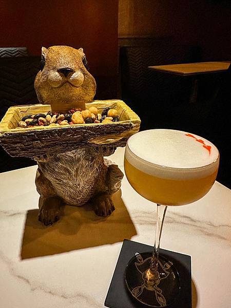 使用煙斗當作酒杯 帶有斑蘭香氣蘭姆酒與煙燻泥煤威士忌 一口shot掉可以感受到煙燻味!